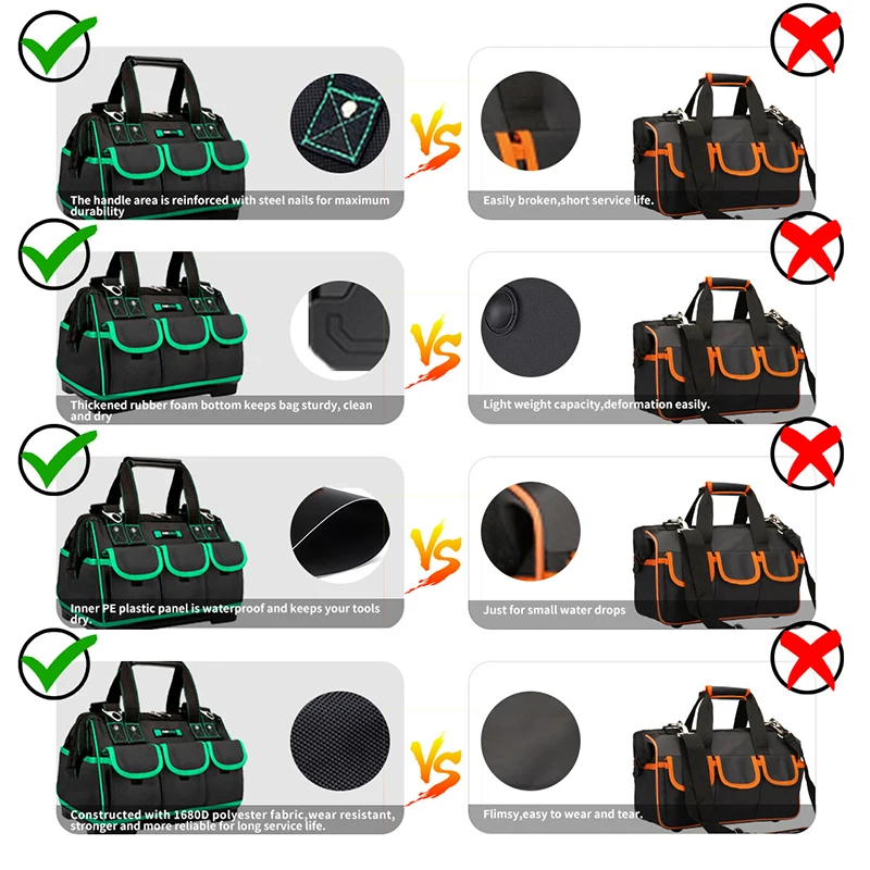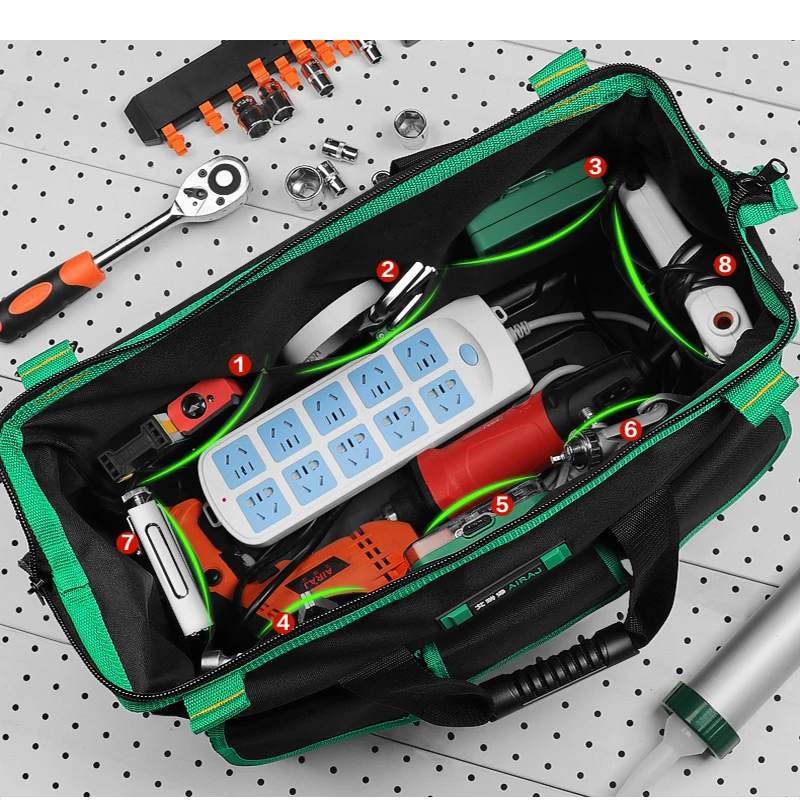 AIRAJ 2020 Upgrade Tool Bag, 13/15/17/19/23 inch Electrician Bag 1680D Oxford Waterproof Wear-resistant Tool Storage Toolkit : Click Here AIRAJ 2020 Tool Bag,Simple/Classic/Upgrade/Flagship Thick Waterproof Large Capacity Multi-function Electrician Bags : Click Here AIRAJ Heightening Large Capacity Tool Bag, Multi-function Electrician Bag, Anti-fall and Wear-resistant Woodworking Bag : Click Here