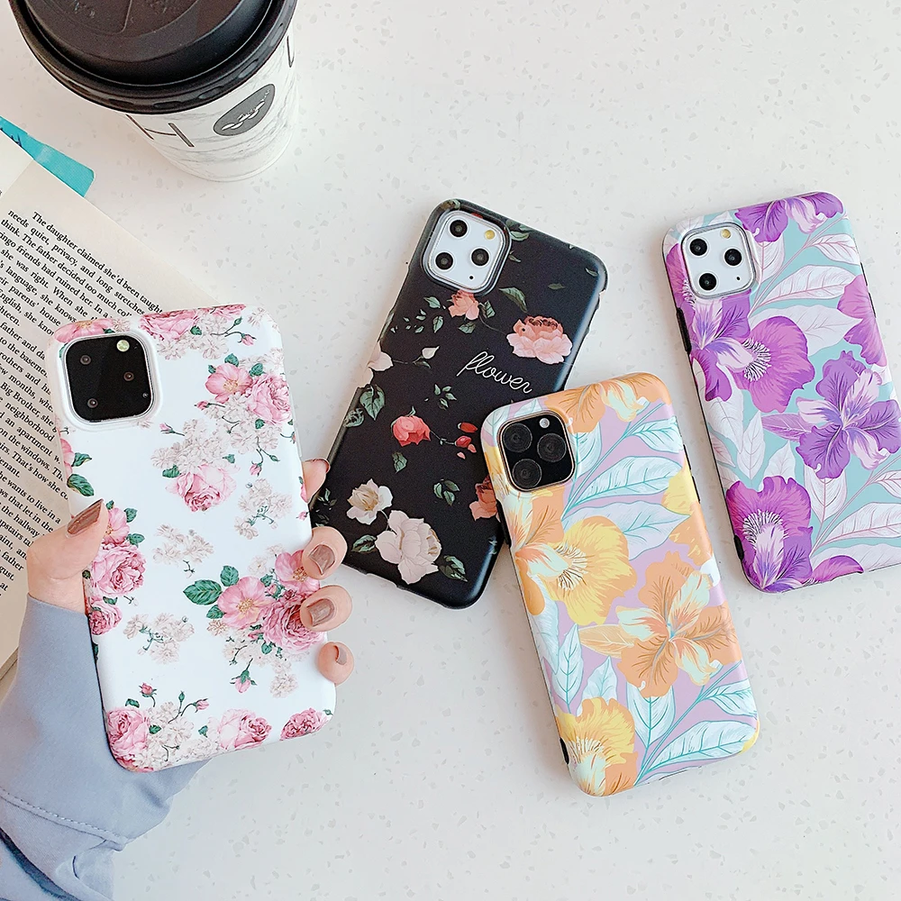 32899012598 Affordable LOVECOM Phone Case For iPhone 11 Pro Max XR XS Max X 8 7 6 6S Plus Retro Flower & Leaves Soft IMD P