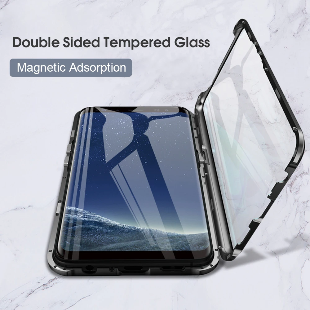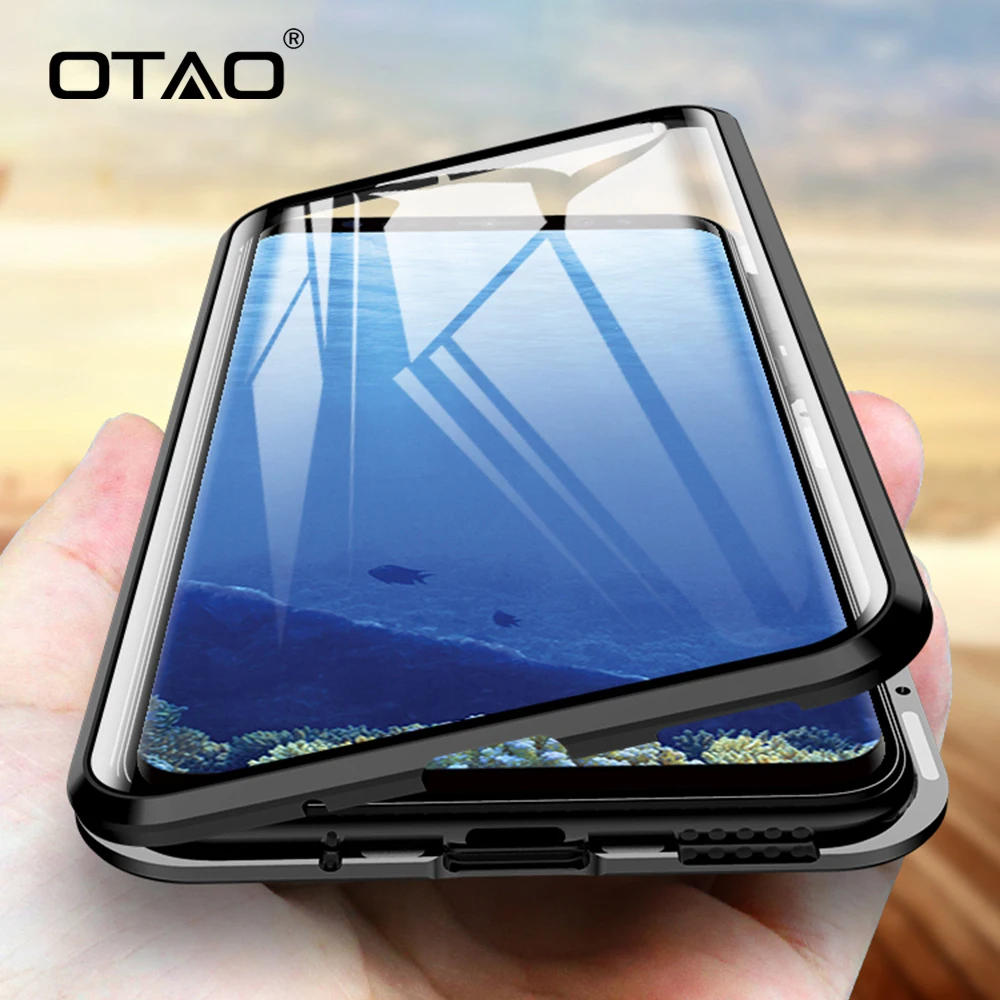 Clearance OTAO Metal Magnetic Case For Samsung Galaxy S9 S8 S10 Plus Double Sided Glass Cases For Galaxy Note