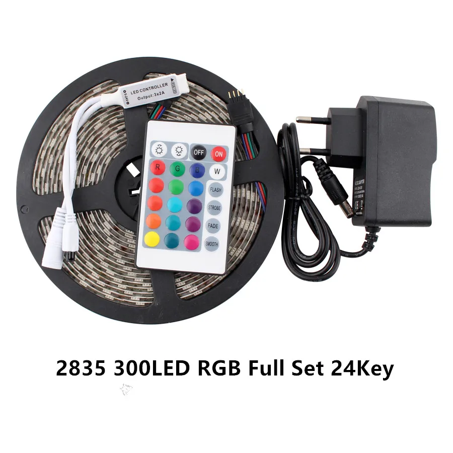 Refurbished 12 V Volt RGB LED Strip 12V Light Waterproof SMD 2835 5M 12V Led Strip RGB Light Tape Diode 24Key R