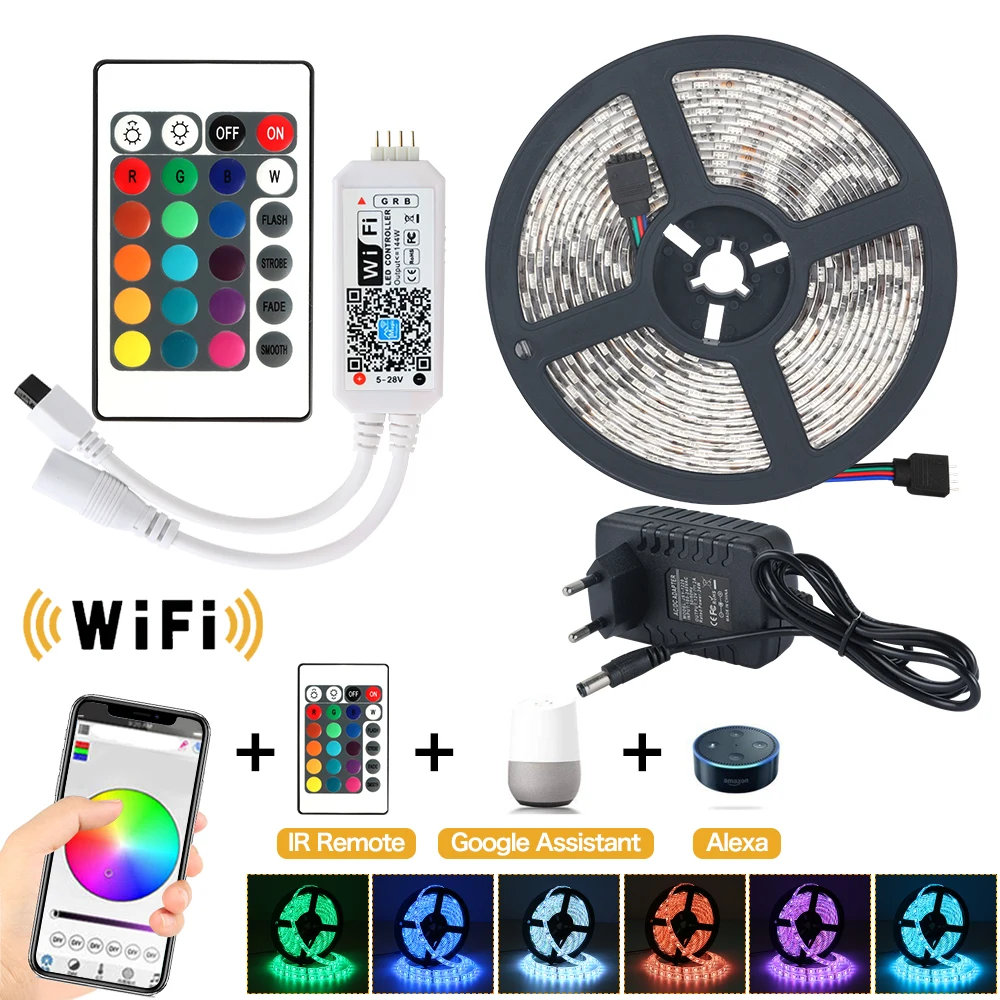 WIFI LED Strip light set 5M 10M SMD RGB 2835 5050 diode led tape ribbon Waterproof wifi led tape Remote controller with adapter : Click Here rgb led strip 5050 IP67 Waterproof AC220V rgb lights 60leds/m 5050SMD With wireless Bluetooth Controller plug led lighting : Click Here RGB LED strip 5m 10m 15m Waterproof led neon Flexible light 5050 DC12V 60 Leds/M tape WIFI Bluetooth IRRemote controller adapter : Click Here