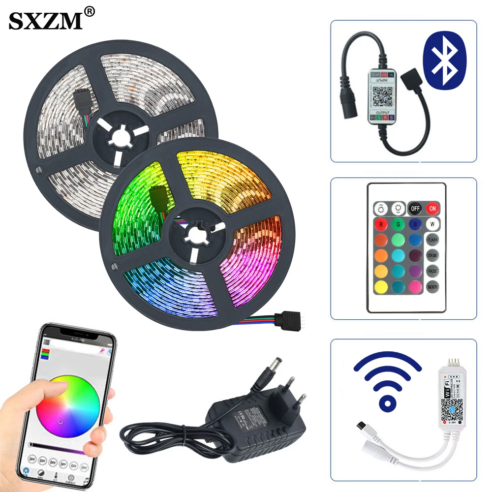 Luxury 5m 10m 15m RGB LED Strip 5050 2835 DC12V Waterproof Bluetooth WiFi Flexible Diode Tape Ribbon LED L